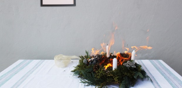 5. Löschen Sie Kerzen an Adventskränzen und Gestecken rechtzeitig, bevor sie heruntergebrannt sind. Tannengrün trocknet mit der Zeit aus und wird zur Brandgefahr.