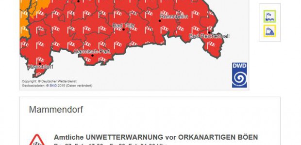 Windgeschwindigkeiten bis 115km/h sagt der Deutsche Wetterdienst an.