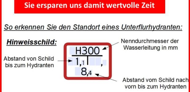 Halten Sie „Ihren“ Hydranten und das dazugehörige Schild vor dem Haus frei von Eis und Schnee und damit können Sie bereits ganz einfach einen unheimlich wichtigen Beitrag leisten.