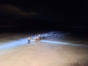 Dabei konnten wir auch den Eisrettungsschlitten der Wasserwacht nutzen, der uns im Ernstfall ebenfalls zur Verfügung steht.