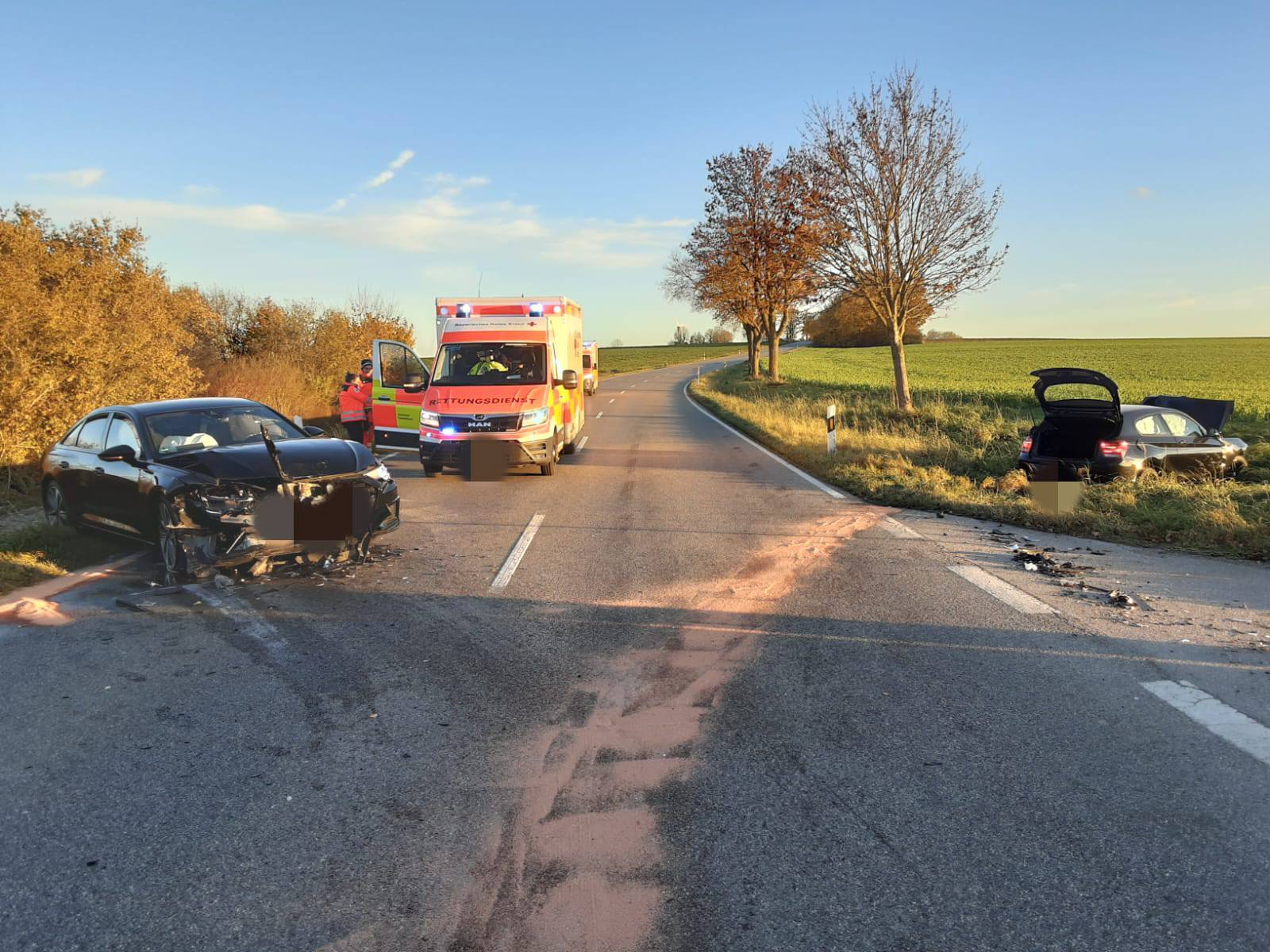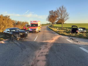 An dem Unfall waren 3 PKWs beteiligt, davon 2 mit einem frontal Zusammenstoß.