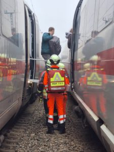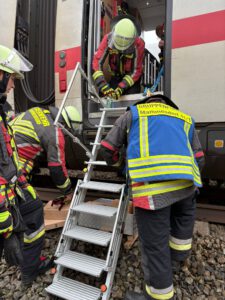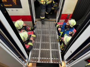 Die Fahrgäste benutzten dabei Rettungsrampen der Bahn und der Feuerwehr.