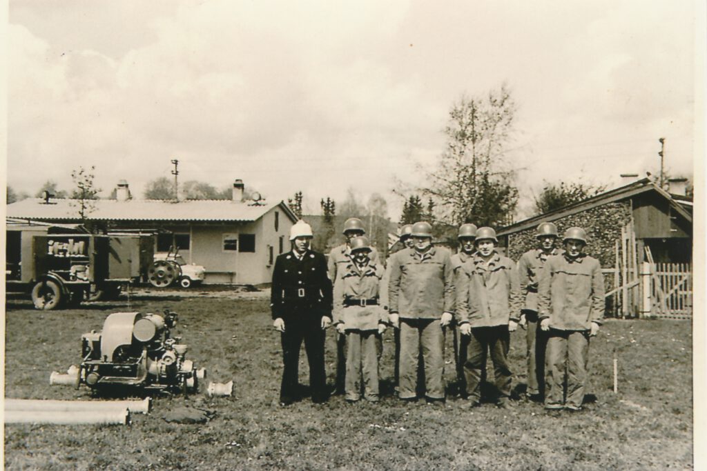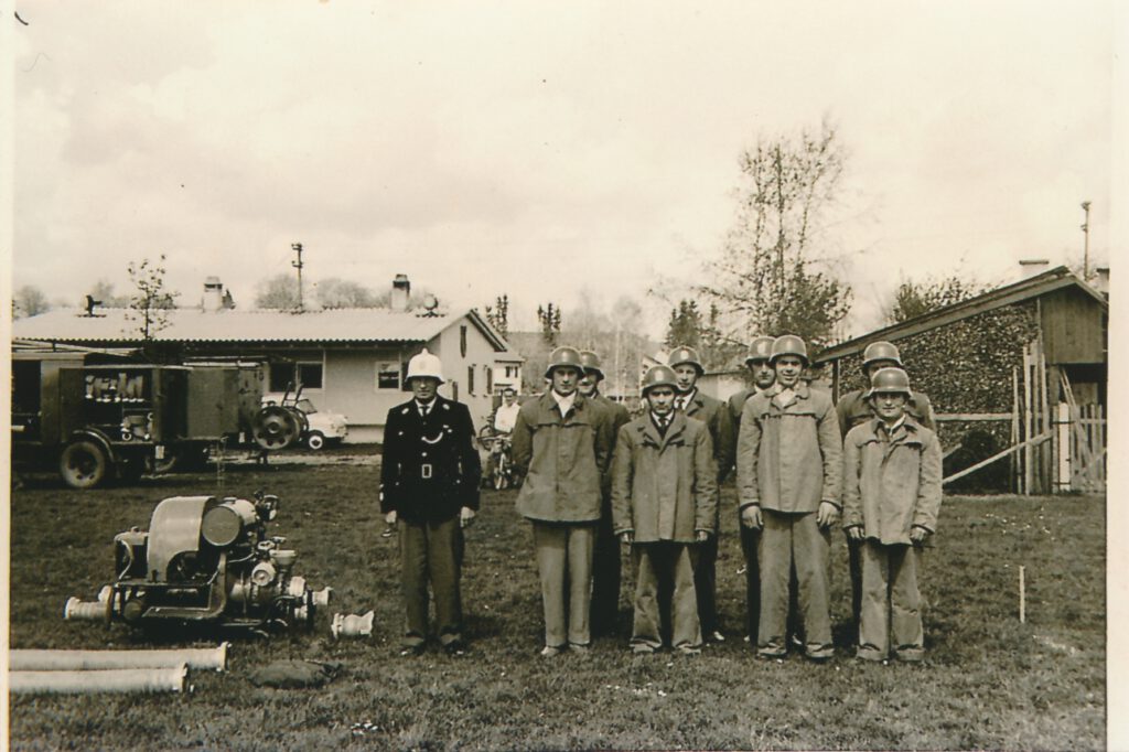Während des Krieges wurden wir bei Übungen und Einsätzen in München öfters von Herrn Bezirksbrandmeister Schwarz besucht und mit voller Anerkennung bedacht, die er durch Zueignung brauchbarer Gegenstände, besonders Schlauchmaterial, praktisch bewies. Der Gerätepark der Wehr wurde 1944 durch Zuweisung einer TS 8 Flader bedeutend verstärkt.
