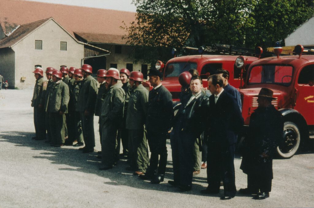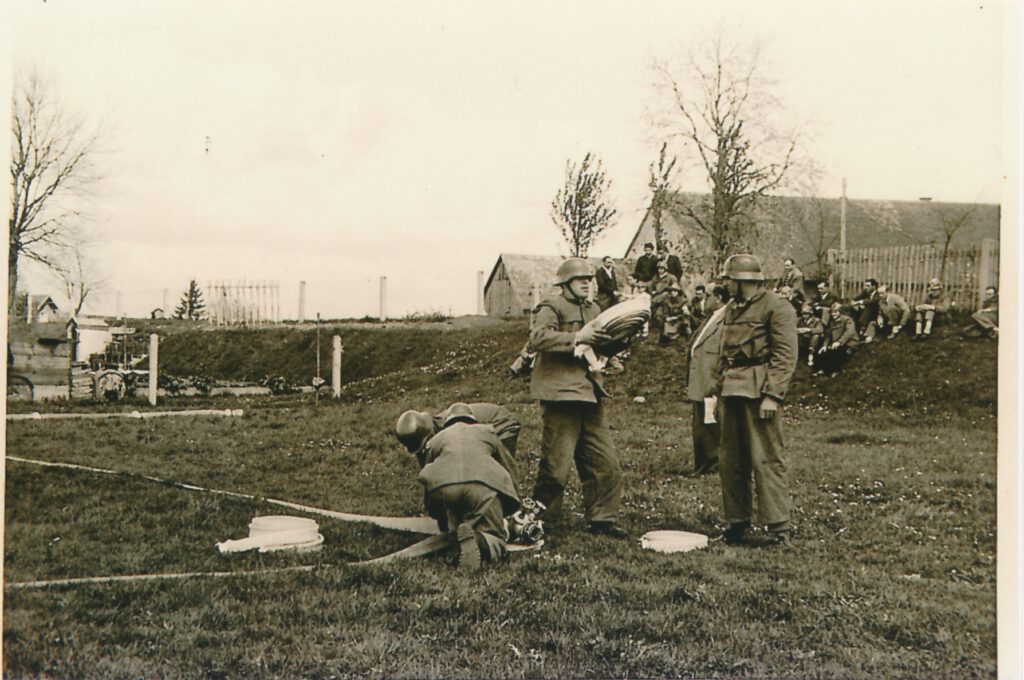 “Der Verlauf der Übung zeigte, dass trotz des Krieges der Stand unserer Feuerwehr im Gesamten als ein Guter bezeichnet werden kann. In der Schlussansprache spendete Herr Kreisfeuerwehr- Vertreter Bauer als Inspizierender dem bewährten tüchtigen Kommandanten Herr Johannes Stammel als auch den Mannschaften frohes Lob, in der sachlichen Kritik bemängelte er das Fehlen einer praktischen Schubleiter, deren Anschaffung aber von dem stellvertretenden Bürgermeister sofort zugesagt wurde. ”