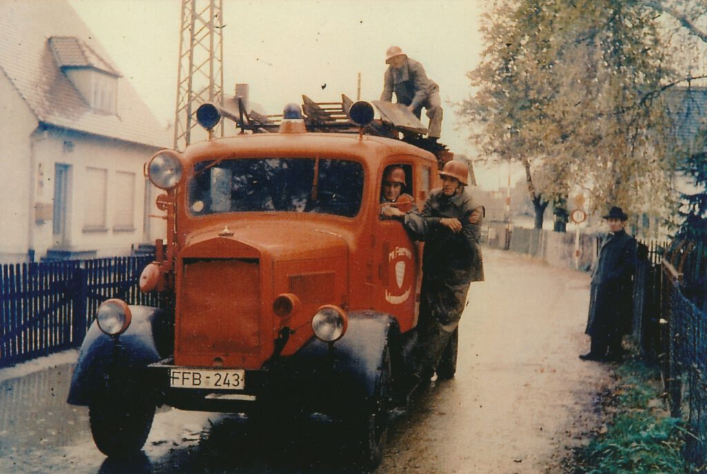 Ab 1936 wurden “General – Appelle” abgehalten. Am 08.03.1936 war zum Beispiel auf der Tagesordnung: “Die neuen gesetzlichen Bestimmungen der Freiwilligen Feuerwehren. “. Die Freiwilligen Feuerwehren wurde in dieser Zeit in Feuerschutzpolizeien umgewandelt und verloren somit ihre Eigenständigkeit.